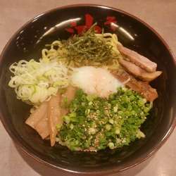 | 備考 | 油そば(並盛り150g・大盛り225g・W大盛り320g)680円 辛味噌油そば(並盛り150g・大盛り225g・W大盛り320g)730円 トッピング チャーシュー 300円 ねぎごま 100円 半熟玉子 100円 メンマ 100円 白ねぎ 100円 焼のり 100円 すりニンニク 無料 柚子こしょう 無料 スペシャルA ねぎごま・半熟玉子200円 スペシャルB ねぎごま・半熟玉子・チャーシュー350円 特製水餃子(3個)180円 ビール(小瓶)350円 |