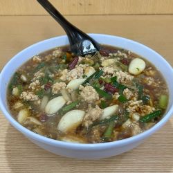 【スープ】少し塩気は強め。それなりに味噌味はしている。唐辛子の辛さはかなりマイルドなので所謂ベトコンラーメンの中では亜流なのかもしれない。