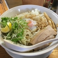 カットレモンが乗るなど、珍しいさっぱりとしたまぜそば。