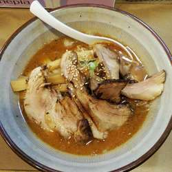 ちょい縮れの黄色い中太麺で柔らかい茹で上がり