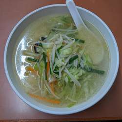 (店外の入り口付近にあるメニュー表で目的の「タンメン」を確認します。)