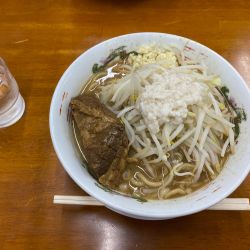 表題の食券を購入しニンニク抜き、やさい普通、アブラ増しでお願いしました。