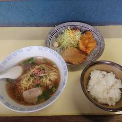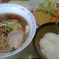 ※単品注文する人が皆無らしく「初めてでしょ?」と声掛けされますw、レビューの段階でちゃんと確認しましたが、破格で揚げ物とご飯が付く「らあめん定食」がデフォでマストなんですね( ‐ω‐)b