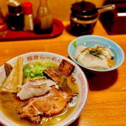 みんな迷わず豚骨ラーメンを注文の中ちょっとドキドキ。