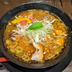 少しして写真のラーメンが提供されました。スープそのものは透明感があり、上にあぶらかすとデフォで胡麻、唐辛子... 続きを見る