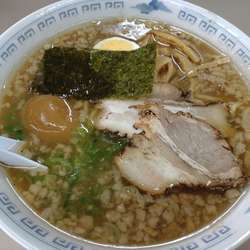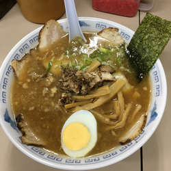 巣鴨の千石自慢らーめん(閉店)出身。今の感覚で言えばかなりライトな豚骨醤油。中太の麺はやわめな茹で加減。昔のラーメンという印象がかなり強いが、むしろそれがプレハブのような外観、店員、客層と合わさってこの店の魅力を作っている。