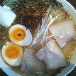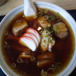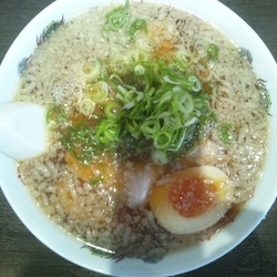 出てきたラーメンは相変わらずのビジュアル。早速スープを一口。うーん!相変わらず安定した旨さがある。一味がピリッと効いているのも特徴だ。麺は低加水の細麺を硬めにした。具はペラペラのチャーシューにクタクタのメンマ、たくさんのネギだ。