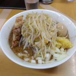 | 備考 | らーめん いごっそうで修行。二郎インスパイア。 ラーメンの特徴は、豚だけでなく鶏だしを加えたスープを入れることで 甘みを強調した味。二郎系の特徴である醤油味を軽減し、自家製の麺は のどごしを重視するなど「女性客でも満足するようにした」とのこと。 麺はラーメン250g・つけ麺300g。数量限定で太麺に変更可能(200g) 通常麺と太麺を選択可能 |