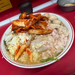 | 備考 | ・店主は(『ラーメン二郎 横浜関内店』出身。店主弟は『ラーメン二郎 亀戸店』現店主) ・店内待ち可(併せて、1軒隣に待合室有) ・麺硬め不可 ・場合によって待合室内にて順番に座っている方に麺の量(小・少なめ・半分)を聞かれる事があります。 ・お客さまの状況により開店時間を早まる場合があります。 |