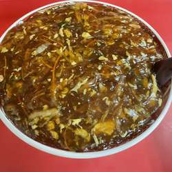 餡を4分の1ほど平らげた後、麺に取り掛かりましたが思った以上にトロトロ餡がお腹に来てスープ?の完食を断念しました。