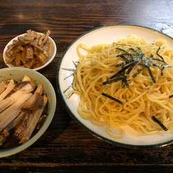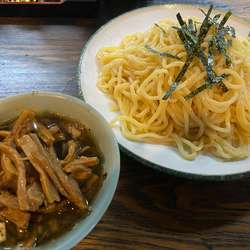 さておき表題をオーダー、暫しで着丼。まずは麺を軽く引き出しつけ汁を一啜り。節系が前面に来ますが、動物系もしっかり支えたバランスの良い出汁です。返しに塩味と並びコクのある甘味を感じるのは、たまり醤油系由来でしょうか。胡椒の辛みや、本枯節の酸味も加わり複... 続きを見る