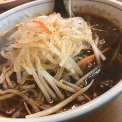 前回同様、太麺仕様に変更し、卓上一味をひと瓶ワッサと入れて辛っからにしてからいただきます。