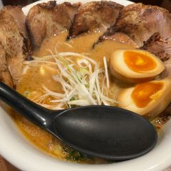 鶏白湯ベースで味噌味がしっかりしておりまろやかで美味い。チャーシューは崩れるほど柔らかい。炒飯がめっちゃ美味いからスープとのループは最高でした。ただモバイルオーダーがめんどくさい。ご馳走様でした。