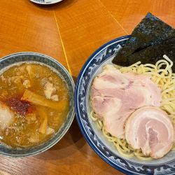 思いっ切り麺を掬い上げどっぷりとつけ汁に浸し勢い良く一気に啜り上げその勢いそのままに麺を喉に流し込む、旨い!... 続きを見る
