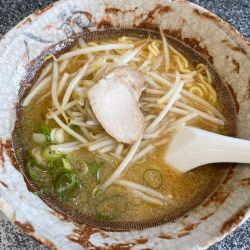 しゃっきりもやしをロースのチャーシューでわざわざ包むようにして食べると得も言われぬ触感と続く味わいが広がる。つづいて、濃い目で熱々のスープの上に貼られた油の下から、気持ち油を絡めるようなそぶりでそろりと麺を手繰り、口の中に入れ咀嚼するとこれまた何とも言えずうまいのだ。