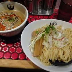少しして写真のつけ麺が配膳されました。つけダレは茶色い色合い、表面にはラー油?に白と黒のゴマがまわしかけられてお... 続きを見る