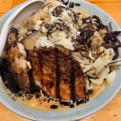 | 備考 | 店内写真撮影禁止!(ラーメン等以外) 店主は「麺香房 暖々」の初代店長。 ※食券制。 ※麺量は茹で前で300gオーバー。普通のラーメン2杯分。並の二郎にも引けを取りません。大盛は450gとの事。 ※無料トッピングは二郎標準「ヤサイ・ニンニク・アブラ・カラメ」。(配膳直前にご主人から聞かれますので、コールはその際に!) ※味薄め、麺少な目、麺硬め等、後から調整できないものは食券提示の時に申告しましょう。ヤサイ少な目、ぶた一枚は配膳直前でもいい模様。 ※デフォルトではニンニクが入っていません。コールの際、どうぞ! 【群馬のうまいラーメン2014→2015最新版】に掲載 |