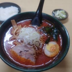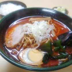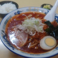 口頭で鉄火麺・麺硬めアブラ濃くと小ライスを!