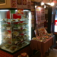 店内の店頭には食品サンプル、メニュー掲示などにぎやか。