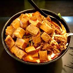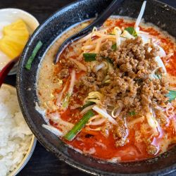 担々麺のメニューが多いが、初心者なので普通の担々麺にする。ご飯セットは、ご飯普通盛りとサッパリとした杏仁豆腐。