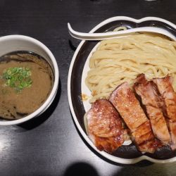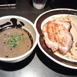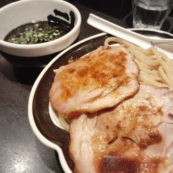 | 備考 | 麺屋武蔵の12番目の系列店 近隣の「麺屋武蔵 武骨」とは異なる、赤・白・黒(三種類の味)を基調としたつけ麺メインのお店。 (公式HPより) 豚骨をベースに、魚介の香りのする白。香ばしさと苦味の黒。豆板醤などの香辛料の赤。という3色のつけ麺をそろえる。 一番の人気の黒は、ネギ・玉ネギ・コーヒー豆を250℃のオーブンで炭化させ、それをマー油と合わせ、癖になる味になっています。 チャーシューは、スチームコンベクションオーブンで焼き上げたローストポークを使用。 |
