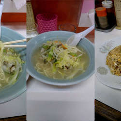 | 備考 | *麺メニュー ラーメン…550円 ネギラーメン…600円 ワカメラーメン…600円 タンメン…600円 もやしソバ…600円 広東メン…680円 みそラーメン…650円 辛みそラーメン…680円 みそバターラーメン…680円 チャーシューメン…680円 五目ソバ…680円 坦々麺…650円 *セットメニュー Aセット 「ラーメン」または「中華ざる」と以下の組み合わせ おにぎり…6?0円 半カレー…650円 半玉子丼…650円 半生姜焼丼…680円 半カツ丼…680円 半チャーハン…680円 Bセット 「タンメン」または「みそラーメン」または「冷やし中華」と以下の組み合わせ おにぎり…650円 半カレー…680円 半玉子丼…680円 半生姜焼丼…700円 半カツ丼…700円 半チャーハン…700円 その他ご飯もの、定食各種あり |