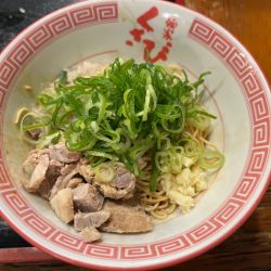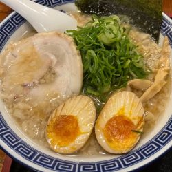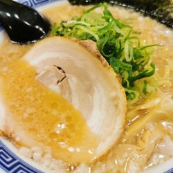| 備考 | 豚骨ラーメン店。 店主は東京池袋の「屯ちん」で修行との事。 店長オススメメニューは「炊出し豚骨醤油麺690円」「極上あぶりチャーシュー豚骨麺880円」「特製一口焼ギョウザ10コ 390円」等。 駅前大通りとアーケードに面した絶好のロケーションと、都会的な内装と店構えも強み。 |