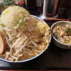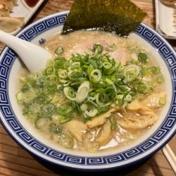 豚骨醤油と醤油、味噌のバリエーションで豚骨醤油にしました。背脂もかなりありパンチのあるスープですね。