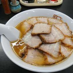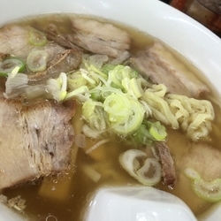 ジューシーなチャーシューと、平麺が最高です。