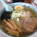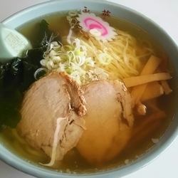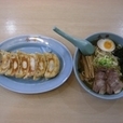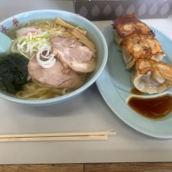 塩か醤油か迷うくらいのあっさりしたスープに佐野ラーメンよろしく青竹打ちのちぢれ麺、そして名物のジャンボ餃子が並ぶ。