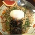 麺は和え麺と同じのちょい平打ちな太麺。麺には香味油的なものがまぶされており、その上に鰹節、海苔、とびこが乗る。とびことは何とも珍しいが彩りも鮮やかでプチプチしてうまい。うまいんだがつけ麺にしては量が少なく、あっと... 続きを見る