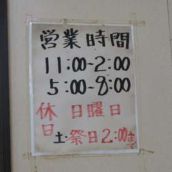 | 営業時間 | 11:00~14:00/17:00~20:00 (土・祭日 11:00〜14:00迄) |