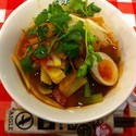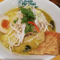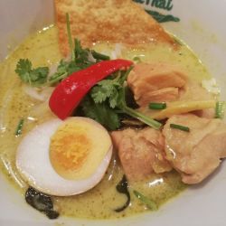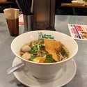 半年振りの訪問。ココナツを効かせた濃厚なカレースープに少しのパクチーがアクセント。プリプリの鶏もも肉が旨い。スープまで飲み干し完食。麺選択可能だが、ラーメン好きには中華麺がマストと思います。(もう一方は現地のうどんのようなやわらか麺)昼は行列できる人気店。ご馳走様でした。