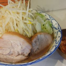 | 備考 | 2012年4月OPENの二郎系。らーめん陸の支店。2013年2月26日より夜営業開始 ・店内入口左手に券売機有り ・満席時は店内待ち可。6席待ち席有り ・麺のかたさ、野菜の量、油の量、味の濃さ(カラメ)は、食券提示時に事前申告(ニンニク、一味唐辛子はカウンターに有) ・箸はエコ箸。レンゲ有。水はセルフ ・卓上調味料=刻み生ニンニク、醤油ダレ、一味唐辛子、胡椒 環八沿いのコインパーキングが満車の場合は、尾山台交差点からハッピーロード尾山台に入り1つめの交差点右折した右手にコインパーキングあり。ただしハッピーロード尾山台商店街はPM4~6時の間、歩行者天国になるので要注意。 |