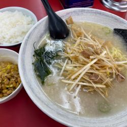 | 備考 | 水曜日〜土曜日(祝日を除く)の8時〜14時の間、ラーメン類にライスか半ライスを注文すると納豆が無料サービスされます。 |