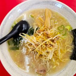 前回、醤油だったので今回は味噌にして見ました。こんもりしたネギの下にモヤシが…入っているの知っていれば抜きでオーダーしていましたが知らなかったので仕方ないです。濃いめ多めでオーダーしましたがマイルドな仕上がり、モヤシ以外は醤油と同じ。ただやはりモヤシが入ってスープにモヤシ味が混ざります。好き嫌いは人によるかな?私はモヤシ無しの方が良いです。モヤシ嫌いではあり... 続きを見る