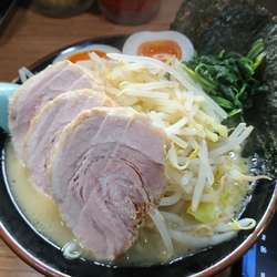 入口横の券売機で表題をポチッ。前客が去った後のカウンター席に着陸。若手男性スタッフにカタメで食券を渡しました。