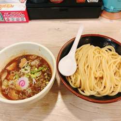 つけ汁は、刻みチャーシュー、ナルト、魚粉、ネギが入っていて、濃厚な豚骨魚介系で麺との絡みがよくうまい。