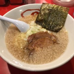 東京豚骨を売りにしているお店で、店内はテーブル席と小座敷が主体の、飲み屋らしい作り。テーブル席に誘導されて着席。券売機は無く、卓上のメニューから「味玉らーめん」を注文... 続きを見る
