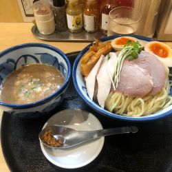 | メニュー | メニューの写真を見る 鶏と魚介のつけ麺 1,100円 |