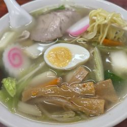 2年ぶりの訪問。100円値上げしたみたい。半ラーメンというわりにけっこう麺が入ってるし、チャーシュー、メンマ、なると、ワカメ、ネギが乗っててちゃんとしたラーメン。お味も懐かしい町中華でやさしい美味しい。