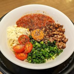 細切れベーコン青ネギが粉チーズと絡まりイタリアン🇮🇹