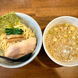 辛肉つけ麺の味噌を頂きました。つけ汁は濃厚な赤味噌によりやや塩分濃度が高く、ひき肉とニラの旨みが味わえるジャンクなつけ汁でした。麺は太めのストレート麺で歯ごたえが良く、400gを頼みましたが残さず頂きました。チャーシューも脂身が旨く満足な一杯です。