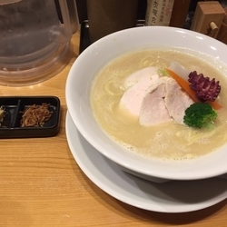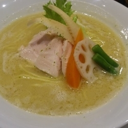 「鶏白湯SOBA」@銀座 篝の写真閉店前の訪問です。札幌にも支店ができました。季節に合わせた野菜がトッピングされます。程よい濃度で上品です。