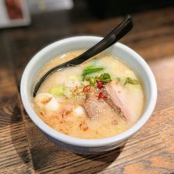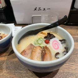 塩豚骨は味わい深く、チャーシューは脂身もほどよくのって美味しかった。