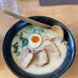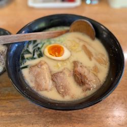 まろやかな鶏白湯に、トロトロの角煮のようなチャーシュー、わかめ、ねぎ、味玉