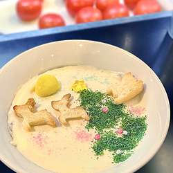 トリュフの風味豊かな冷たい味噌スープに、甘いトマトのコンポートがアクセントです。