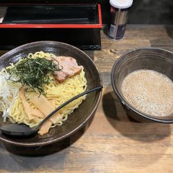 スープは、シャバ系の濃厚動物魚介。節系素材が優しく効いている。この系統にしては、ややオイリーなチューニングなのも嬉しい。