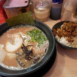 具は、海苔・キクラゲ・チャーシュー。薬味には、小ねぎ。卓上に味変アイテムが揃い、替え玉一... 続きを見る
