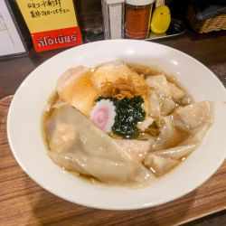 | 備考 | 当店では豚は一切使用しておりません。 紙エプロンあります。ご希望の方はお声がけください。 自家製手打ち麺は並盛で180g。 またワンタンの皮も自家製で仕込んでいる。 麺には国産小麦を100%使用。 かん水は使用せず、足踏みすることでコシを出しています。 手切りのため、太さに若干のバラつきがございますが、 ご愛嬌と優しいお心で受け止めて下さいませ。 スープには肉系のガラは使用せず、 昆布数種の煮干しを組み合わせて出汁を取っております。 ラーメンらしさを出すために 親鶏から取った鶏油を入れております。 化学調味料無添加です。 小さなお子さまも安心してお召し上がり頂ける ラーメンを作っております。 ※以上はメニュー裏面より転載。 |